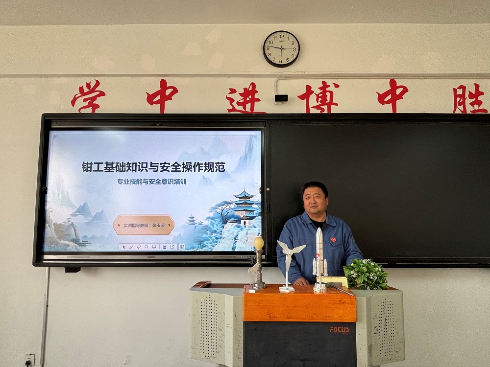 在第二阶段,进行了工程训练安全教育。机械加工实训中心张玉荣老师为同学们上了一堂详实、生动的安全教育课。他结合实训中心的实际情况,系统讲解了设备操作规范、安全防护用品的正确佩戴、常见安全隐患及应急处理措施,并通过案例分析强调了“安全第一,预防为主”的核心理念,为即将开始的工程训练筑牢了坚实的安全防线。