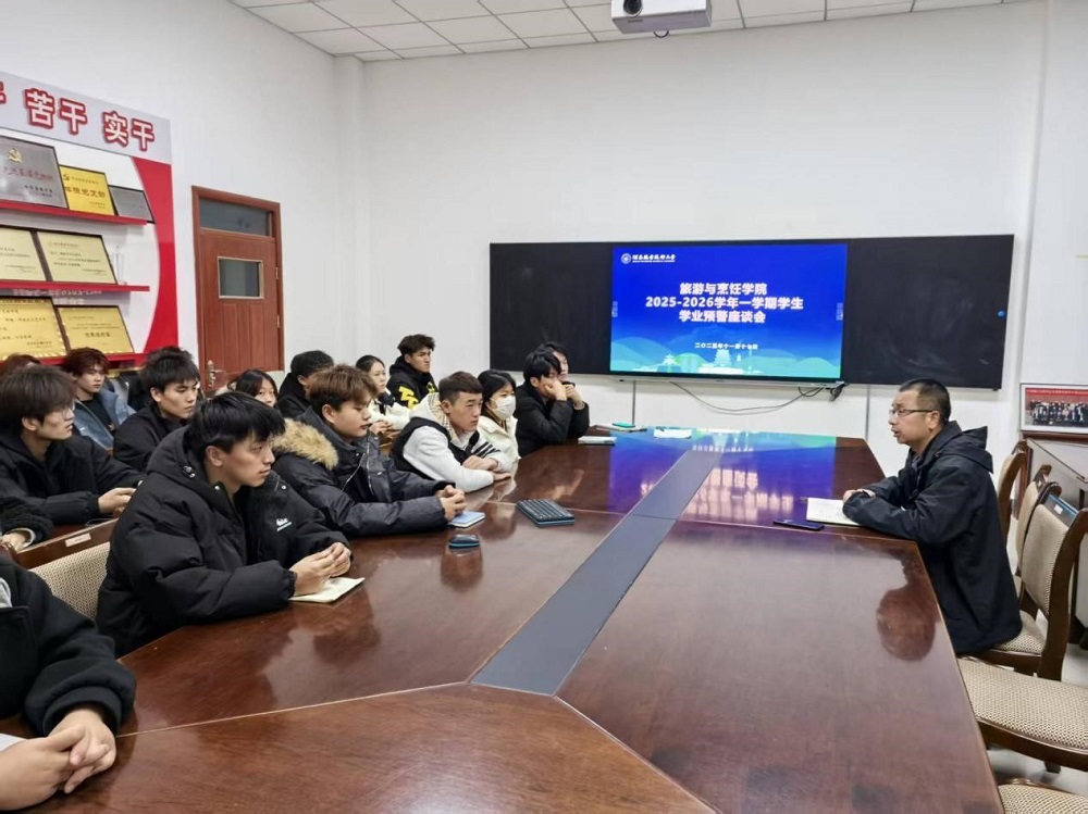 为进一步加强学生学业管理,提升人才培养质量,帮助学业存在困难的学生明确学习目标、改进学习方法,旅游与烹饪学院于2025年11月17日在710会议室召开学生学业预警座谈会。副院长马东邦及2023级、2024级共计30余名学业预警学生参加会议。