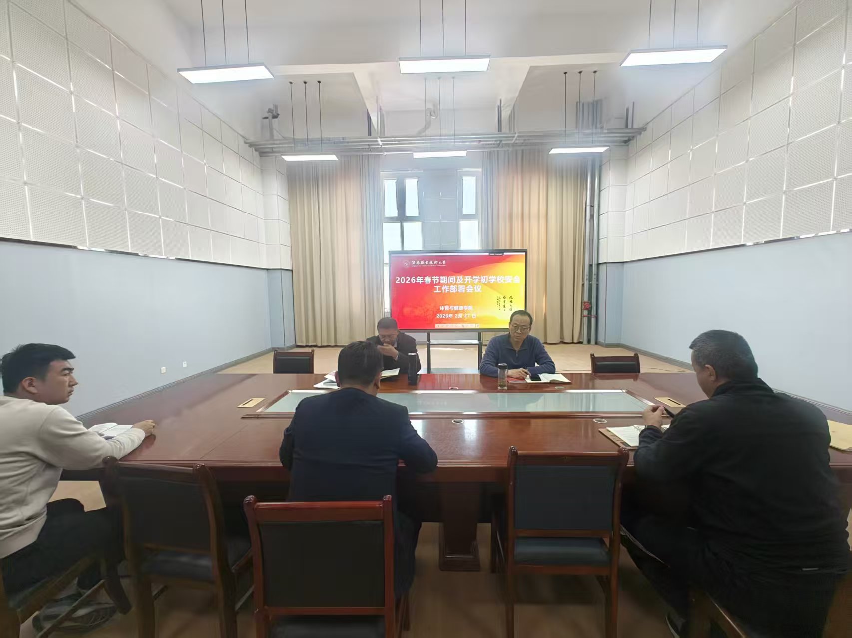 为切实做好2026年春节期间及春季开学初的校园安全稳定工作,2月27日上午,体育与健康学院在学院会议室召开专题安全工作部署会议;学院领导班子成员参加了会议。