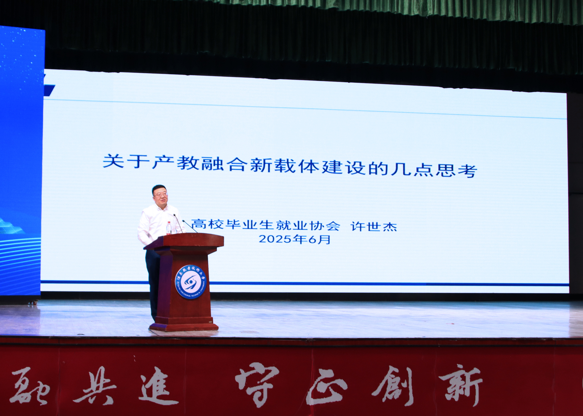 全国知名专家、高校毕业生就业协会副会长、中国职业技术教育网总编辑许世杰教授围绕“关于产教融合新载体建设的几点思考”作专题报告。
