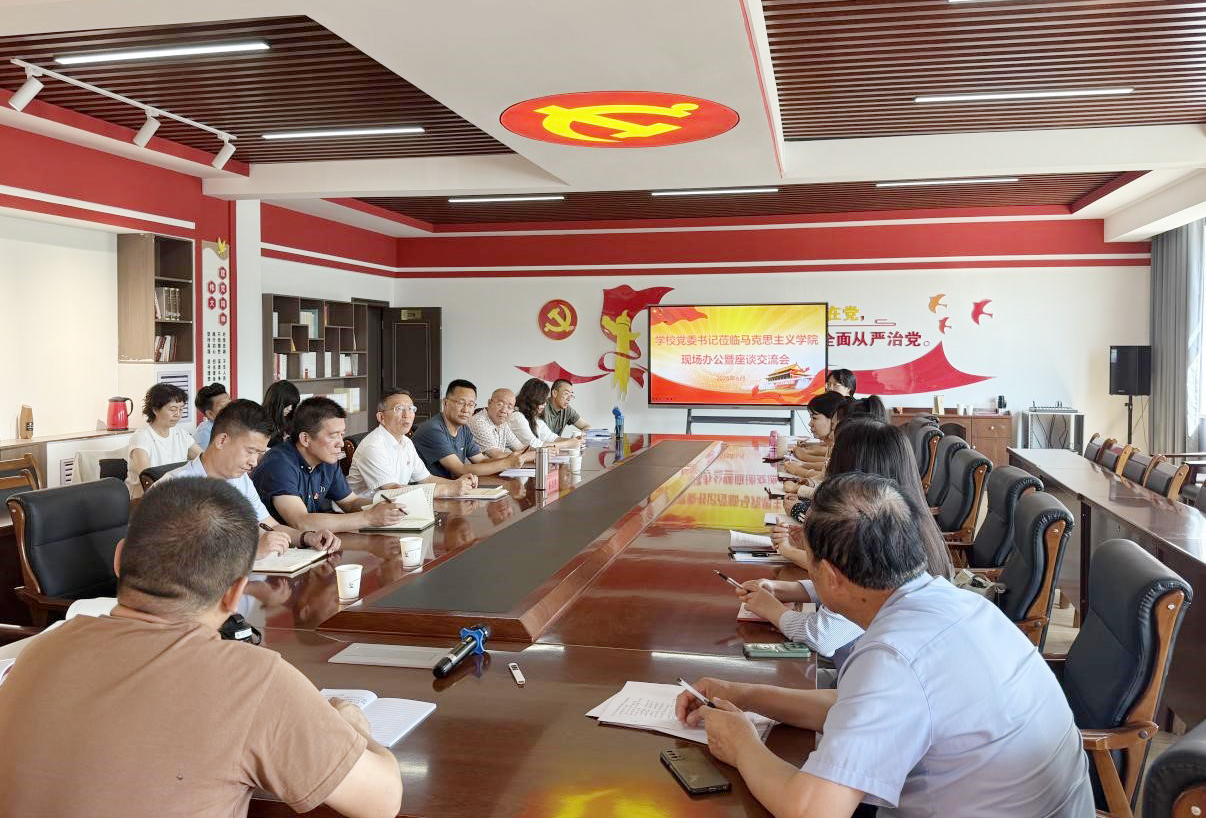 2025年6月24日,学校党委书记易志军深入马克思主义学院调研并现场办公,实地查看了马克思主义学院场馆建设和党支部阵地建设情况,并组织召开了座谈交流会。