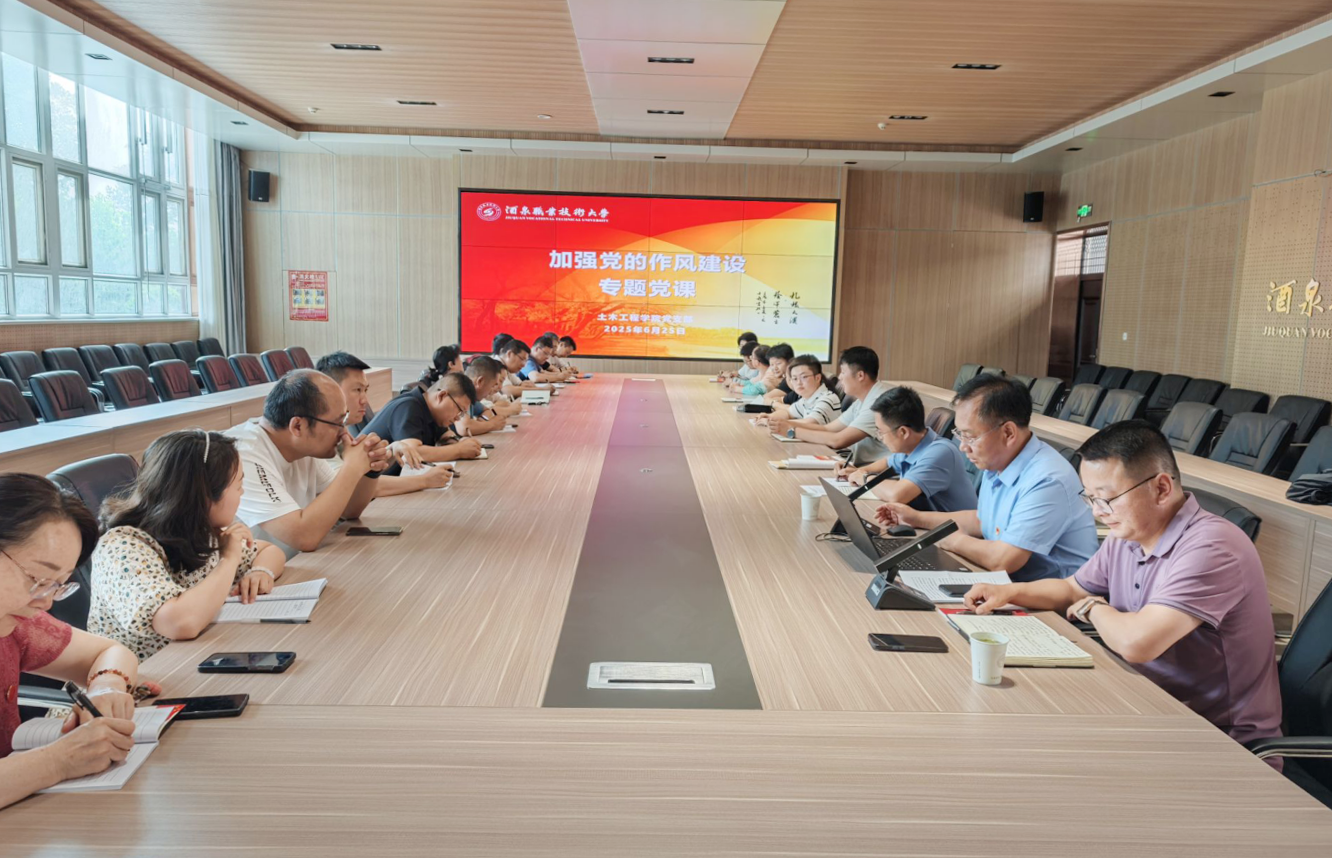 为深入贯彻中央八项规定精神,加强党的作风建设,强化党员纪律意识。2025年6月25日下午,学校党委委员、副校长施荣同志以“改进工作作风,密切联系群众”为题,为土木工程学院党支部全体党员讲授专题党课。