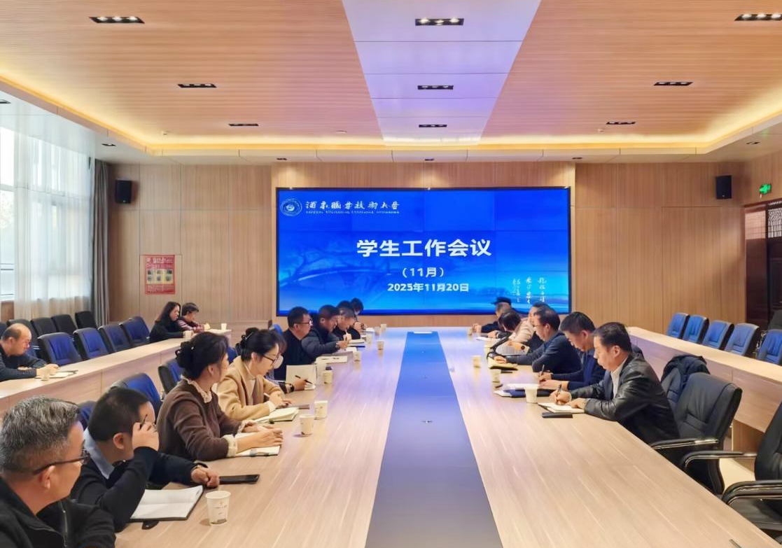 2025年11月20日下午,学校在弘毅楼C103会议室召开学生工作会议。会议由学校党委委员、副校长王金明主持。学生工作部、校团委、国际交流学院负责人,各学院分管学生院领导,肃州区委政法委、辖区派出所民警、社区工作人员参加会议。